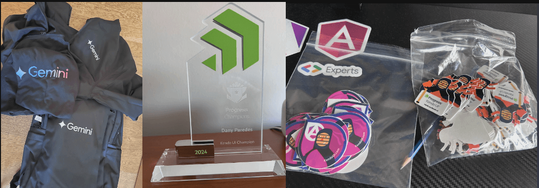 Thanks to Kendo and Google Devs for the trophy, gemini swag, and Kendo UI stickers.