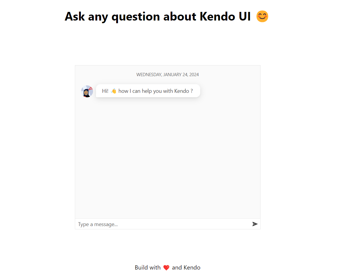 Alright, it works, but it doesn't look very nice. Let's make it visually appealing using Kendo Conversational UI.