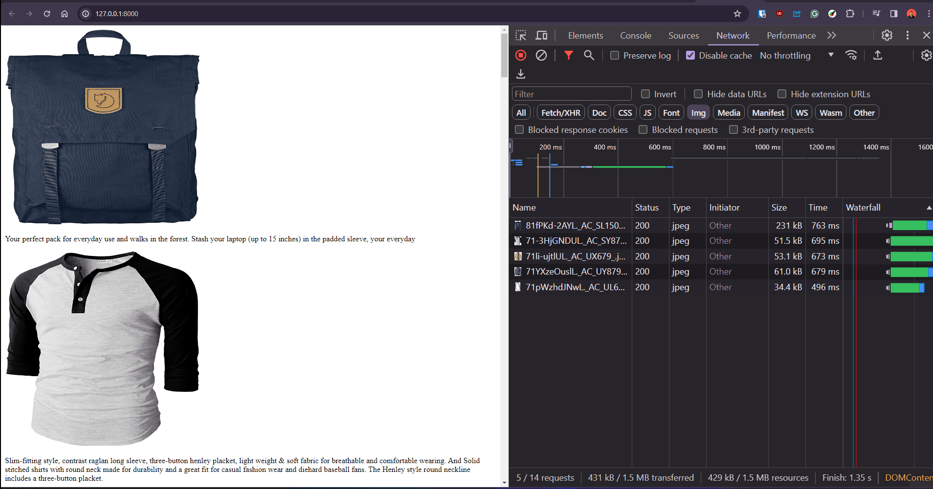 Navigate again to http://127.0.0.1 and explore the network requests and Lighthouse results.