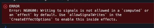 By default, effects aren't allowed to update signals, but for these scenarios, we can disable this restriction by setting allowSignalWrite it to true.